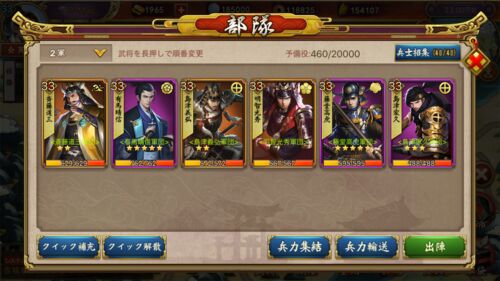 今の2軍は結構長く使ってて、ブログを読み返してみると「75.一軍の編成8」からだから2か月半近く不動のメンバーです。 特に明智光秀君は何と「25.二軍の編成1」から使っているので4か月! 超ベテランなのに今まで一回も☆を振ったことがありません…