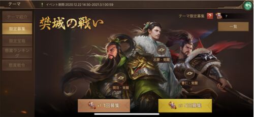 私が「テーマ武将が強い」と知ったのが8月下旬。 その時点で前のテーマの「黄巾の乱」があと2週間で終わってしまうので、今回は諦めて次回のテーマをがっつりやろうと思いました。 で9月15日まで限定募集令を貯めまくって37個。 やってきました、「夷…